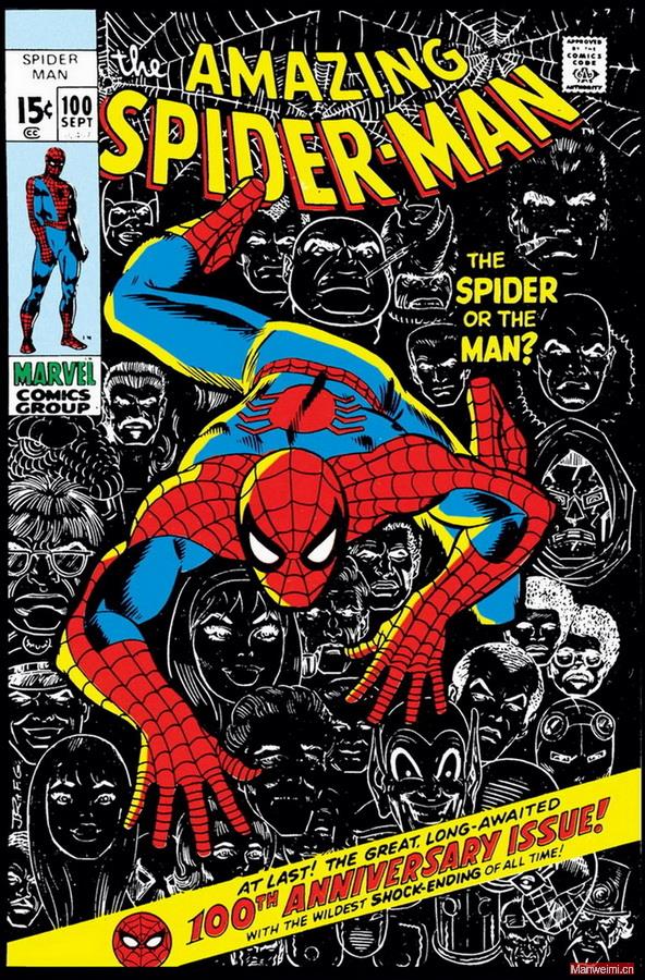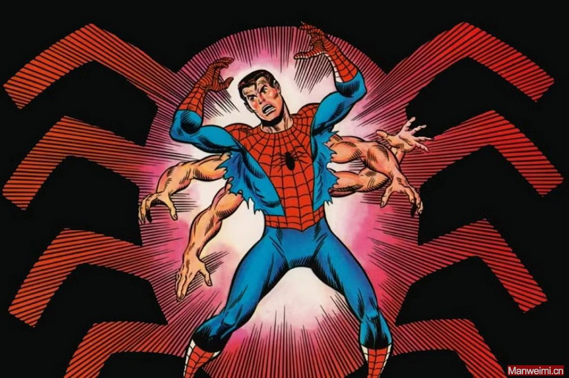 蜘蛛怪人(Man-Spider)的雏形,最早可以追溯到1971年的《The Amazing Spider-Man》#100。这一期对蜘蛛侠而言意义非凡——不仅是漫画发行的第100期纪念,更正式开启了“能力反噬”的核心剧情,也埋下了彼得·帕克对“平凡生活”的极致渴望。