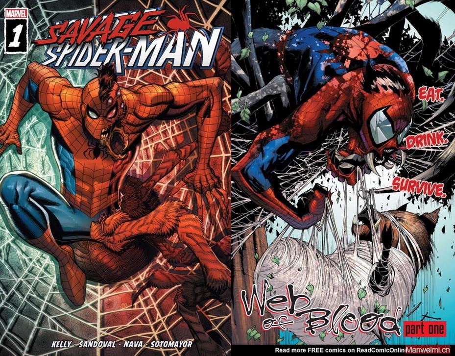 即便到了近年,漫威依然没有放弃“基因诅咒”这个核心主题。2022年的迷你系列《Savage Spider-Man》中,彼得被神秘药物注射后,再度沦为野蛮的蜘蛛怪物,被困在热带荒岛上,一边与邪恶势力周旋,一边与体内的兽性搏斗——这段故事,明显致敬了1990年代动画版的蜘蛛怪人,再次展现了彼得的无奈与挣扎。