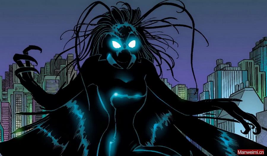 阿德里亚娜·索里亚,代号“蜘蛛女王”,于2004年在《神奇蜘蛛侠(第二卷)》第15期中首次登场,由保罗·詹金斯和迈克尔·瑞安创作。在漫威宇宙的设定中,她是二战时期美国第一位参战的女性海军陆战队员,在“十字路口行动”中暴露于核辐射之下,激活了体内潜藏的变种能力。她在蜘蛛侠的人生中扮演了至关重要的角色,其唾液中含有致突变物质,接触后会将彼得·帕克变成失去理智、受她操控的“蜘蛛人”,这一场景也成为蜘蛛侠漫画中最令人不安的身体恐怖名场面之一。进入2010年代,她的影响力进一步扩大,成为“蜘蛛岛”事件的核心推动者之一。